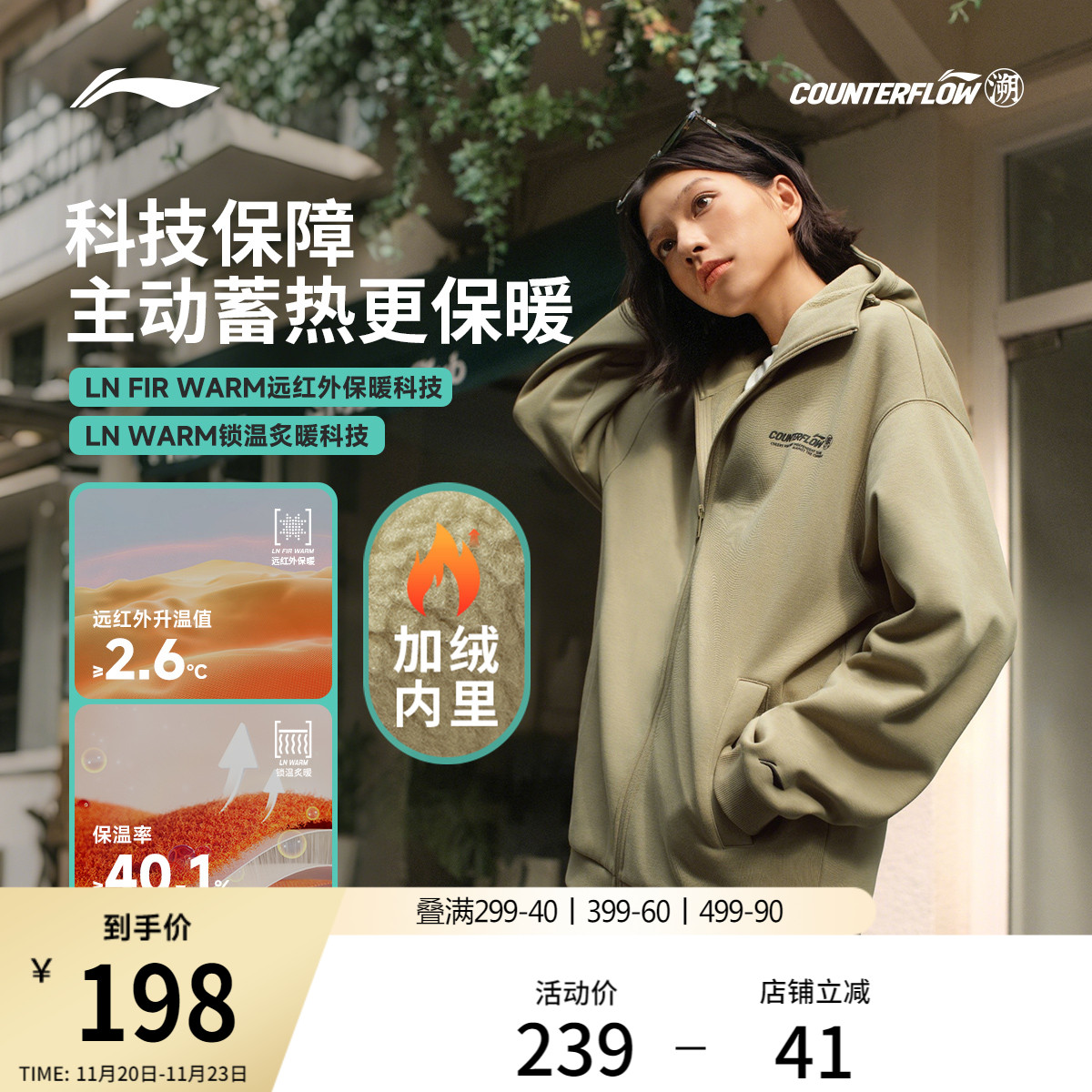Li Ning outdoor CF trace丨 Sweatshirt men's and women's new loose long-sleeved tops with fleece and thickened warm cardigan sportswear