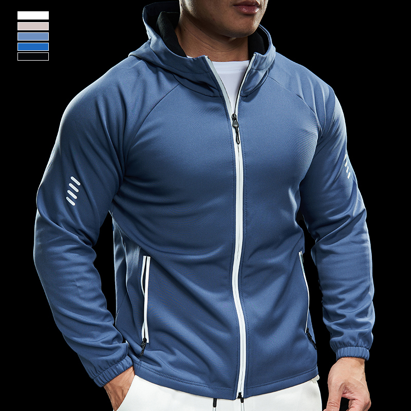 Domineering muscles men's sports fitness long-sleeved hooded jacket top casual slim running training clothes autumn and winter men