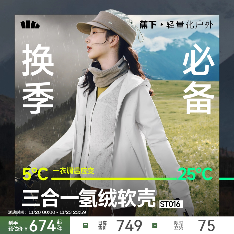 Jiaoxia 3-in-1 sports jacket women's autumn new windproof and water-repellent warm outdoor hiking and mountaineering sports soft shell