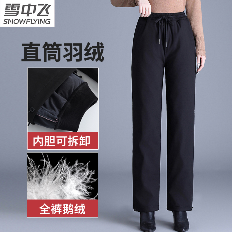 Flying down pants in the snow, women wear detachable liners, winter straight legs, loose loose middle-aged and elderly mothers, warm goose down cotton pants