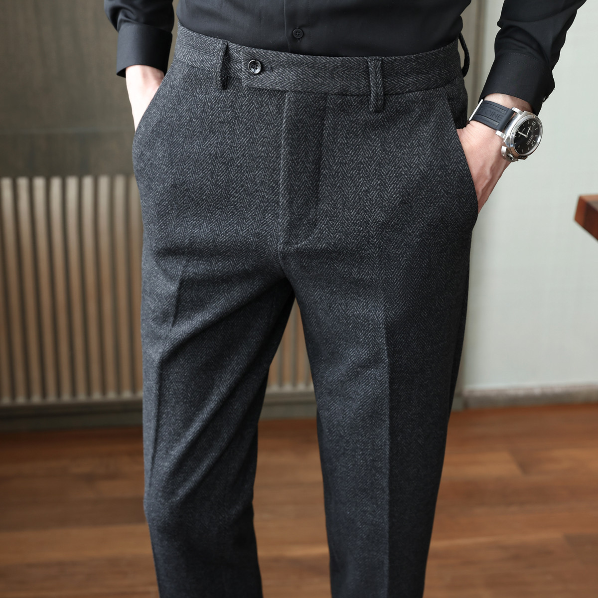 Autumn and winter woolen trousers, men's winter herringbone tweed, men's slacks, brushed business suit pants, men's pants