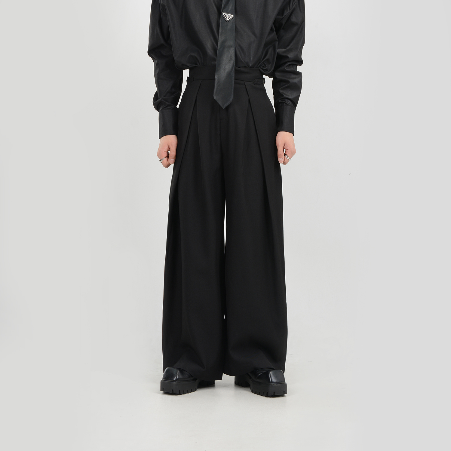 Planet World Cleanfit Pleated floor-length micro-flared casual pants loose straight draped black trousers
