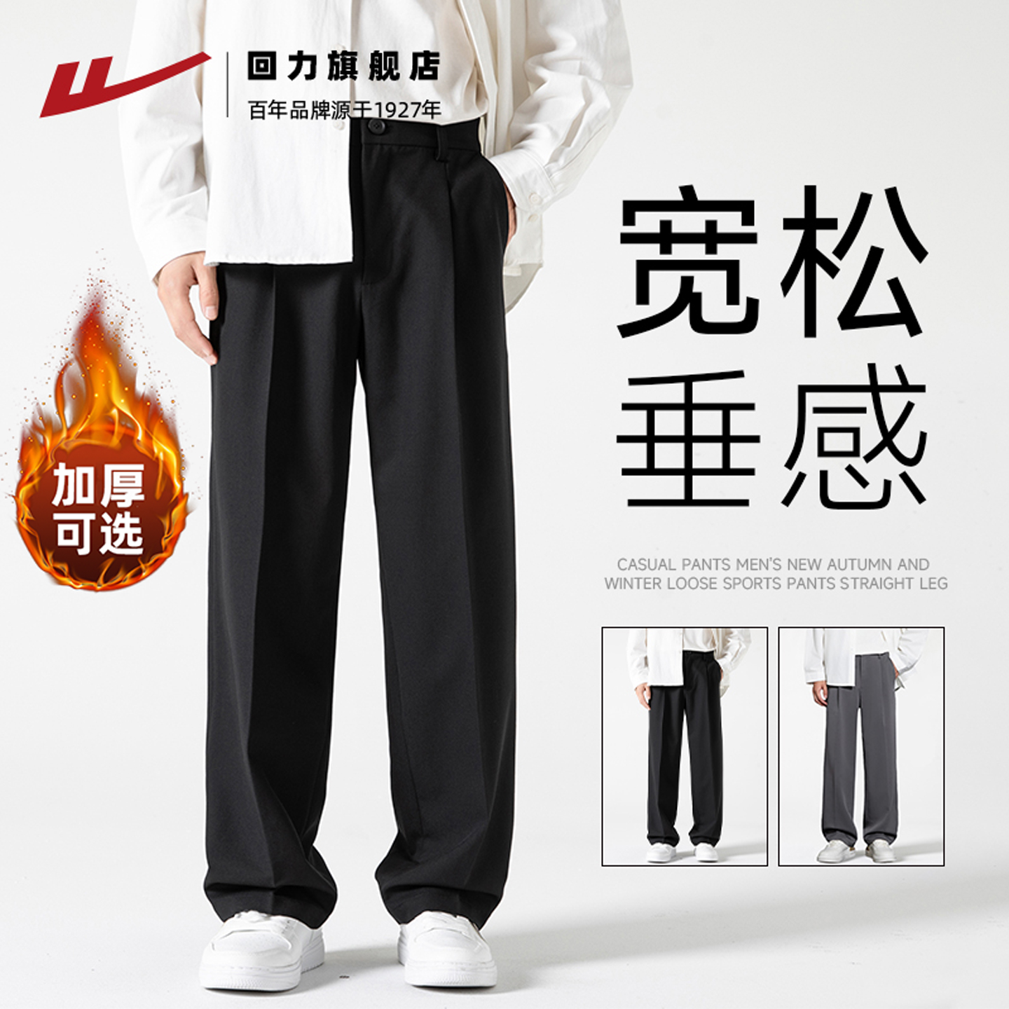 Pull-back suit pants, men's thickened trousers, drape, high-end formal slacks, loose straight spring and autumn black pants