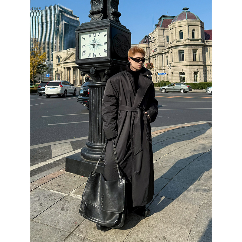 DBWDoublewin original design black long cotton trench coat men's winter wide windproof loose coat jacket