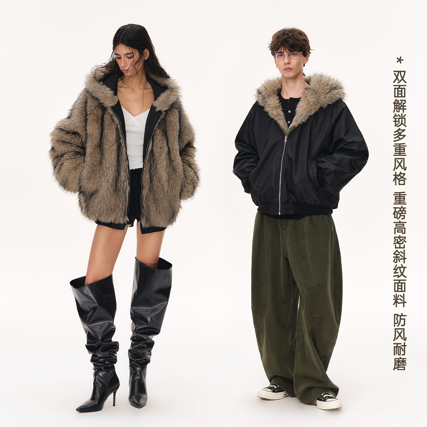 noEmosen (noE) short fox fluff collar front shoulder fitted fit autumn and winter cotton jacket thickened jacket jacket