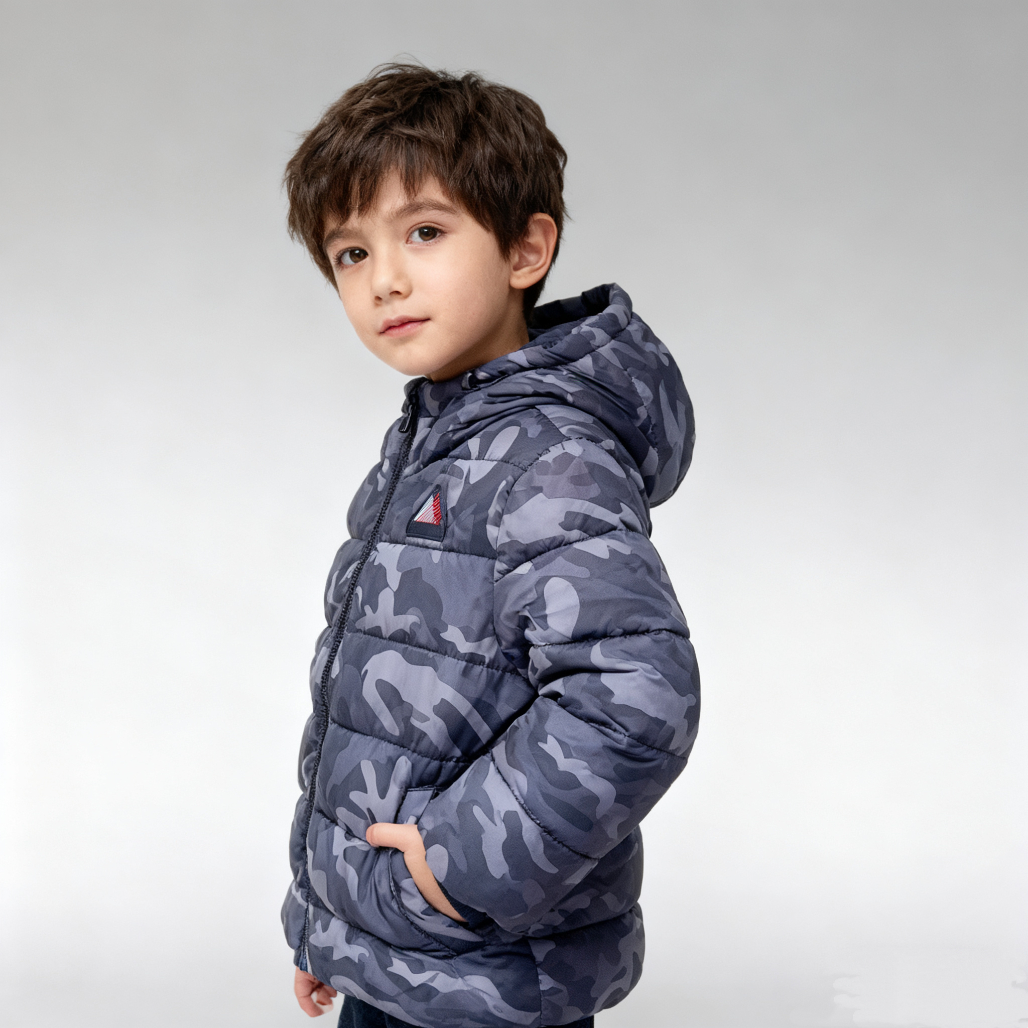 British single-tail nutmeg boys 1-4 years old winter cotton jacket hooded zipper camouflage padded jacket