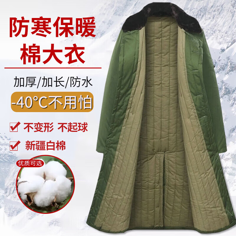 Military cotton coats thickened in winter for men and women, long cold storage labor, security Northeast green coats, washing cold-proof work clothes, cotton jackets