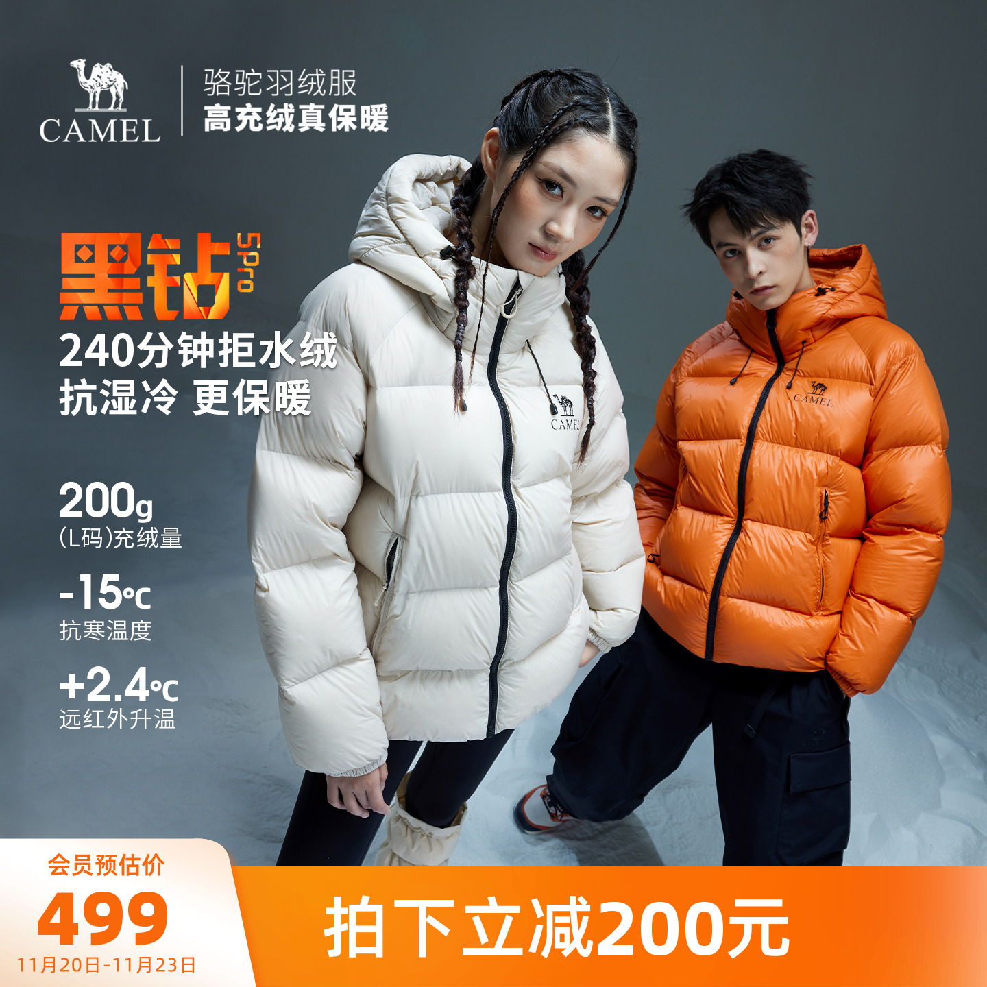 Camel Black Diamond 5PRO Outdoor Puff Down Jacket Winter New Women's Men's Windproof Jacket Water-repellent Bread Jacket