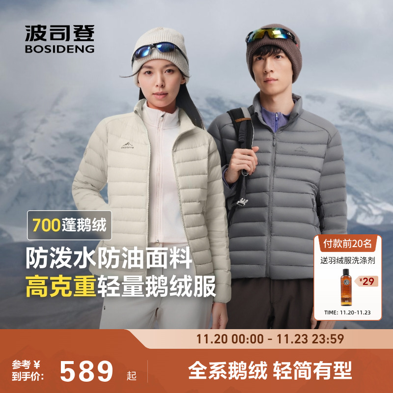 90 goose down Bosideng 25 autumn new rib strip stand-up collar down jacket men's and women's short windproof jacket liner layered