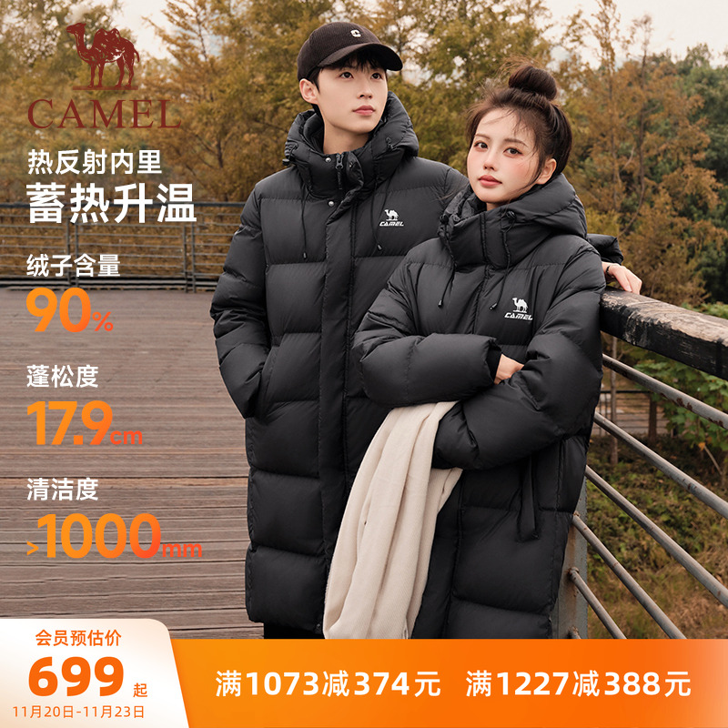 Camel Chinese opera sports mid-length down jacket women's winter thickened warm water-repellent down jacket windproof jacket for men