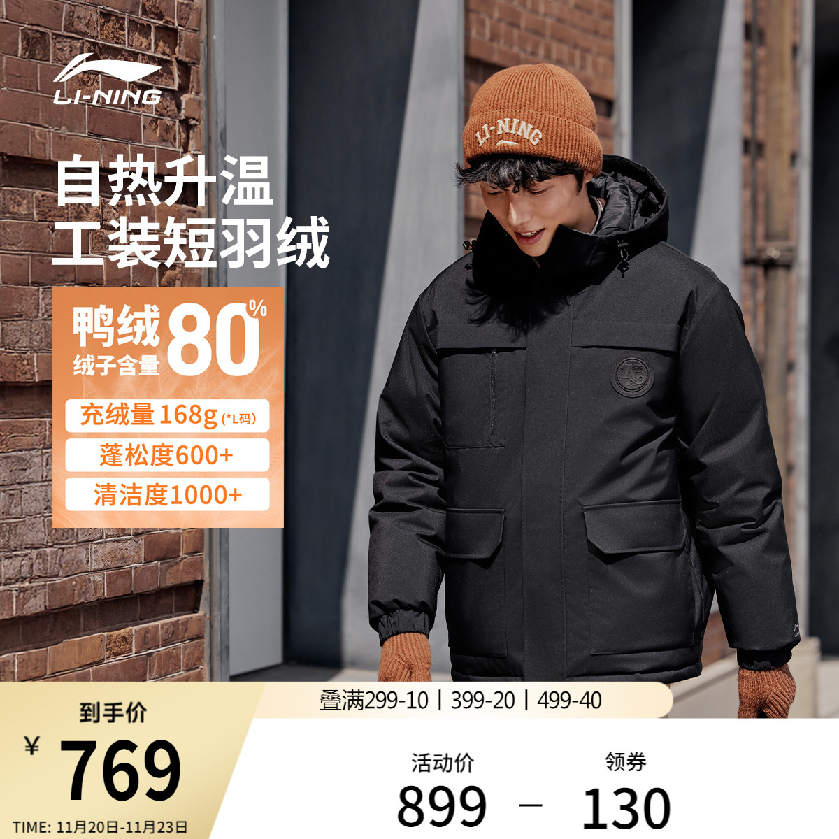 Li Ning Aerospace Dynamic Warm Down Jacket Men's Winter 2025 New Hooded Clothes Short Cargo Sports Jacket