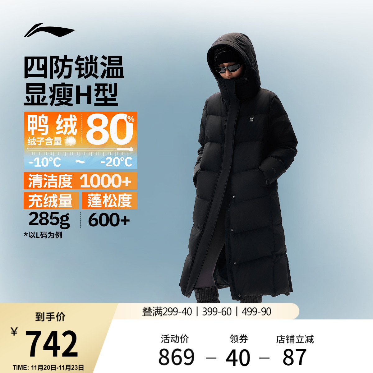 Li Ning hot pot down jacket丨Women's winter duck down long top warm thickened clothes hooded sports jacket women