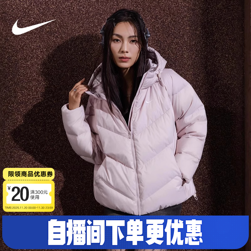 NIKE Nike women's down jacket pink STORM-FIT loose hooded water-repellent jacket HV5236-667
