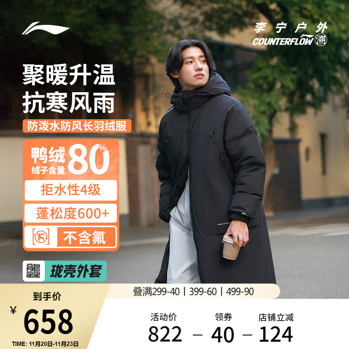 Li Ning outdoor CF trace丨Long down jacket men's new hooded loose top autumn and winter duck down sportswear