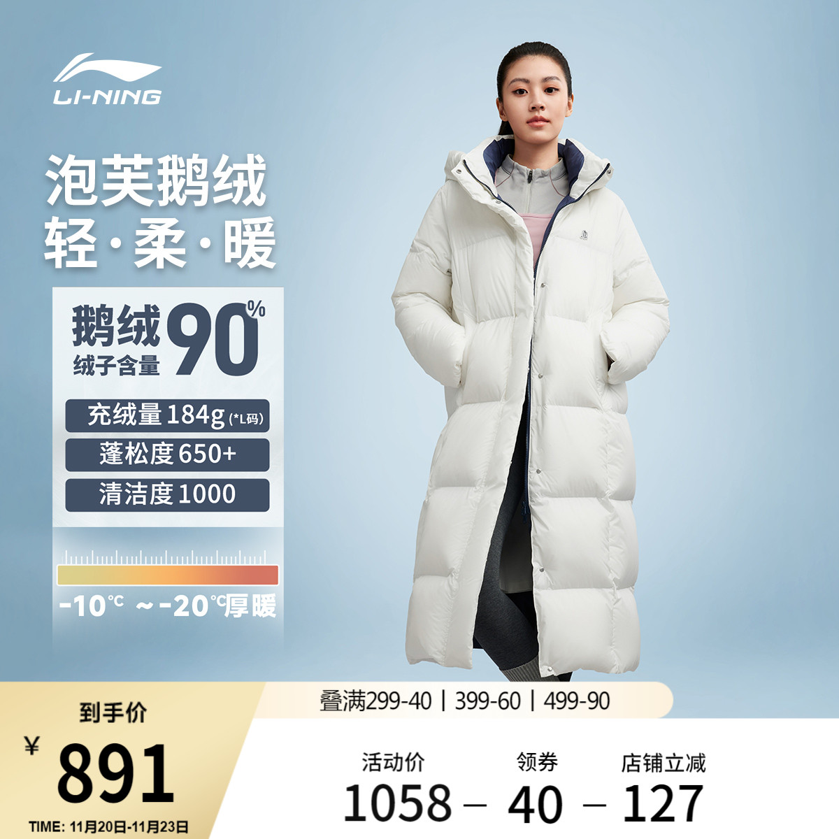 Li Ning hot pot down jacket丨Winter 2025 new long clothes women's hooded goose down warm sports top