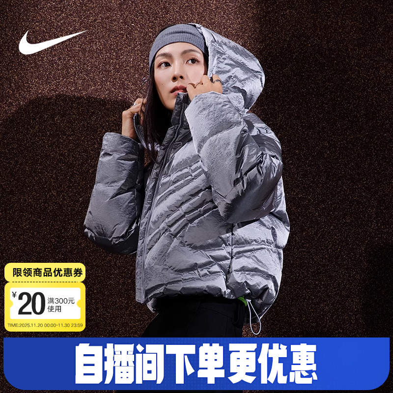 Nike Women's Loose Warm Hook Down Jacket 25 Winter New Silver Hooded Jacket IB2004-095
