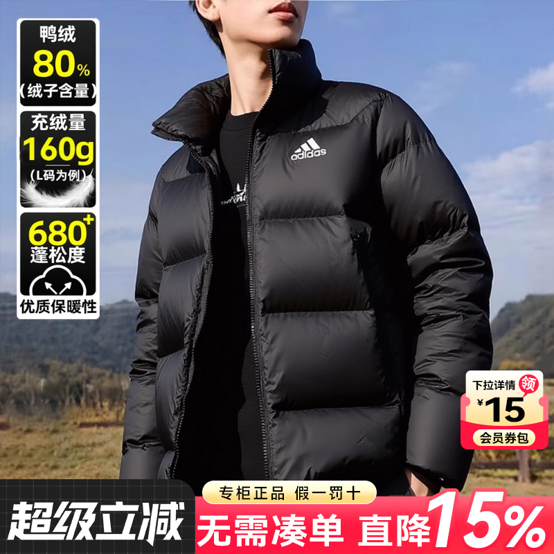 Adidas Down Jacket Men's 2025 Winter New Warm Windproof Stand Collar Jacket KF8760