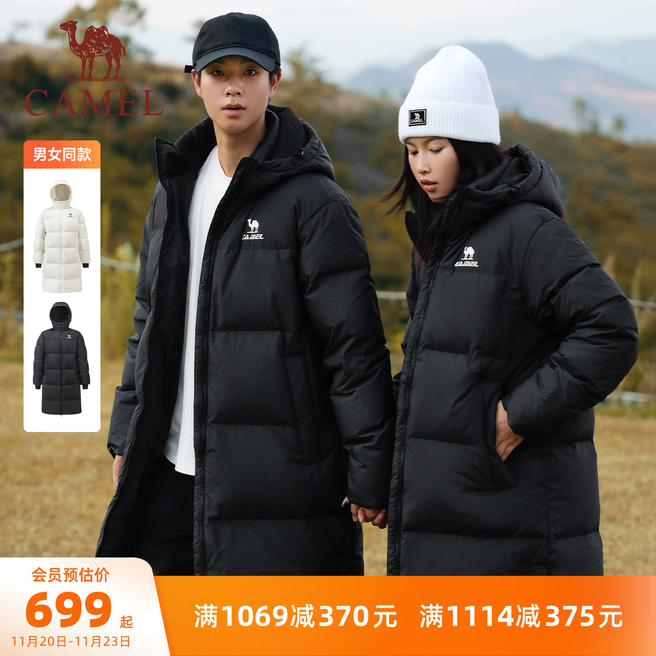 Camel Vulcan Hooded Down Jacket Mid-length 25 Winter 90 Down Water Repellent Sports Down Far Infrared Heating Jacket