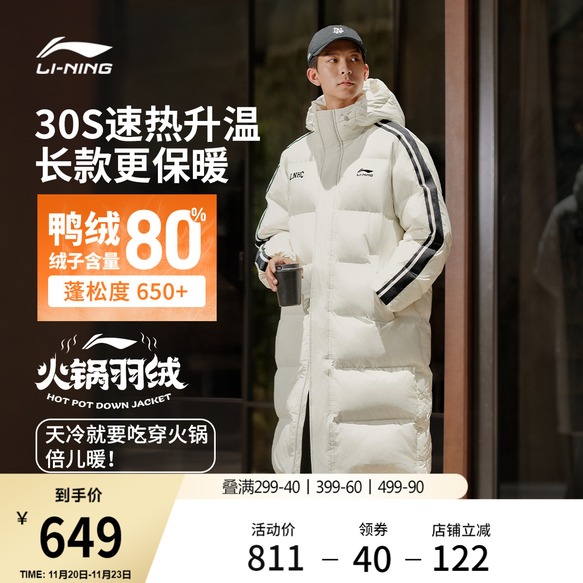 Li Ning hot pot down jacket丨Men's long winter clothes water-repellent winter warm top hooded jacket for men