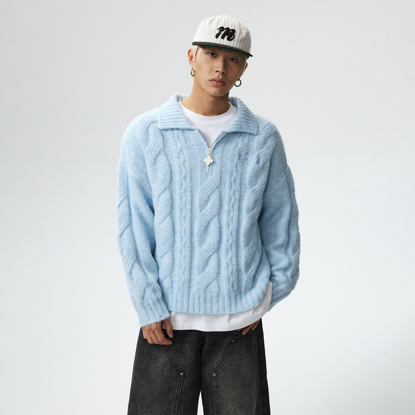 MEDM Twist Lapel Casual Sweater Jacket Men's and Women's Fall & Winter American Versatile Loose Couple Knit Top