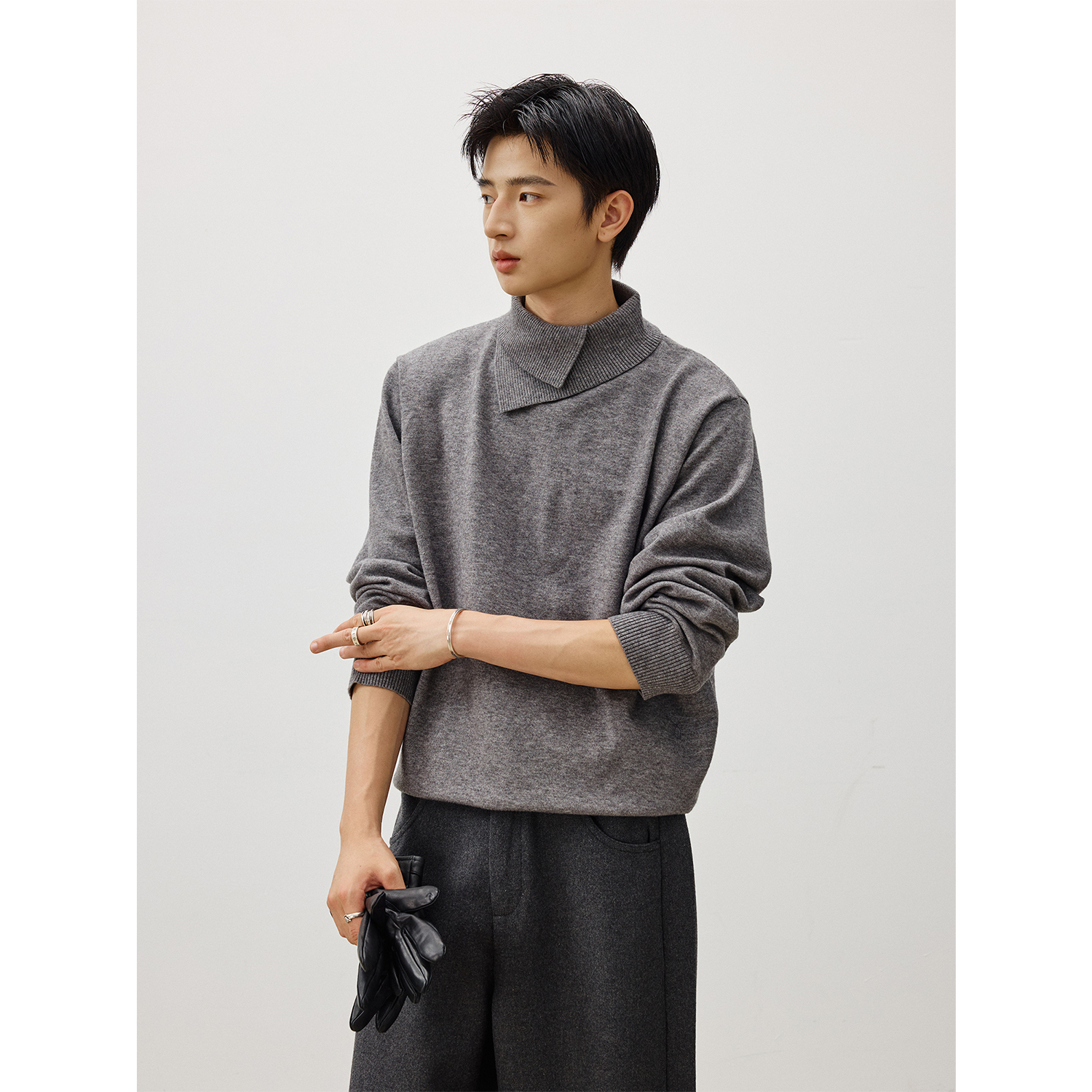 LR MADE 25AW Special-shaped stand-up double collar warm fleece long-sleeved bottom turtleneck knitwear