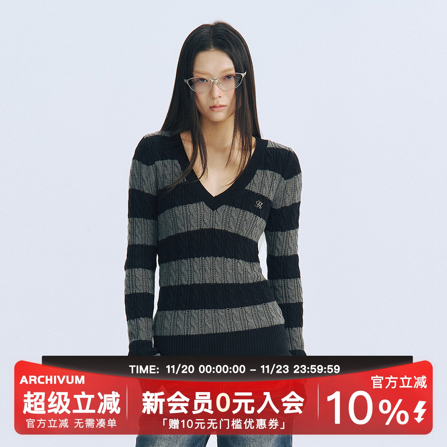 Archivum versatile V-neck twist striped lazy sweater women's autumn loose couple knit top trend