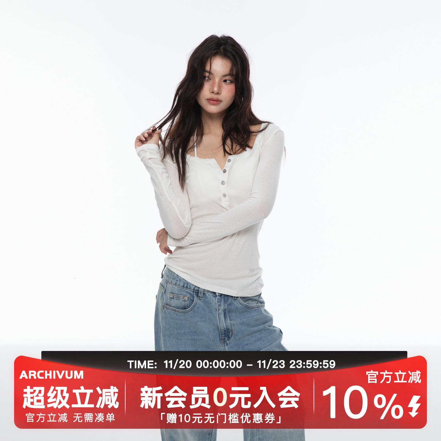 Archivum Lyocell Tencel wool blend U-shaped Henry long sleeve base top slim slim for autumn