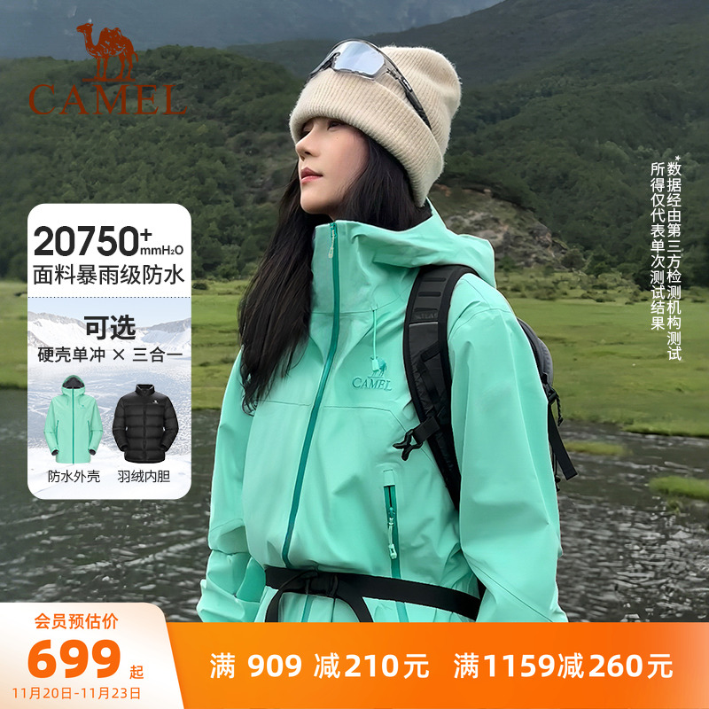 [King Kai Jia Series] Camel outdoor hard shell jacket men's and women's 3-in-1 down jacket new waterproof jacket