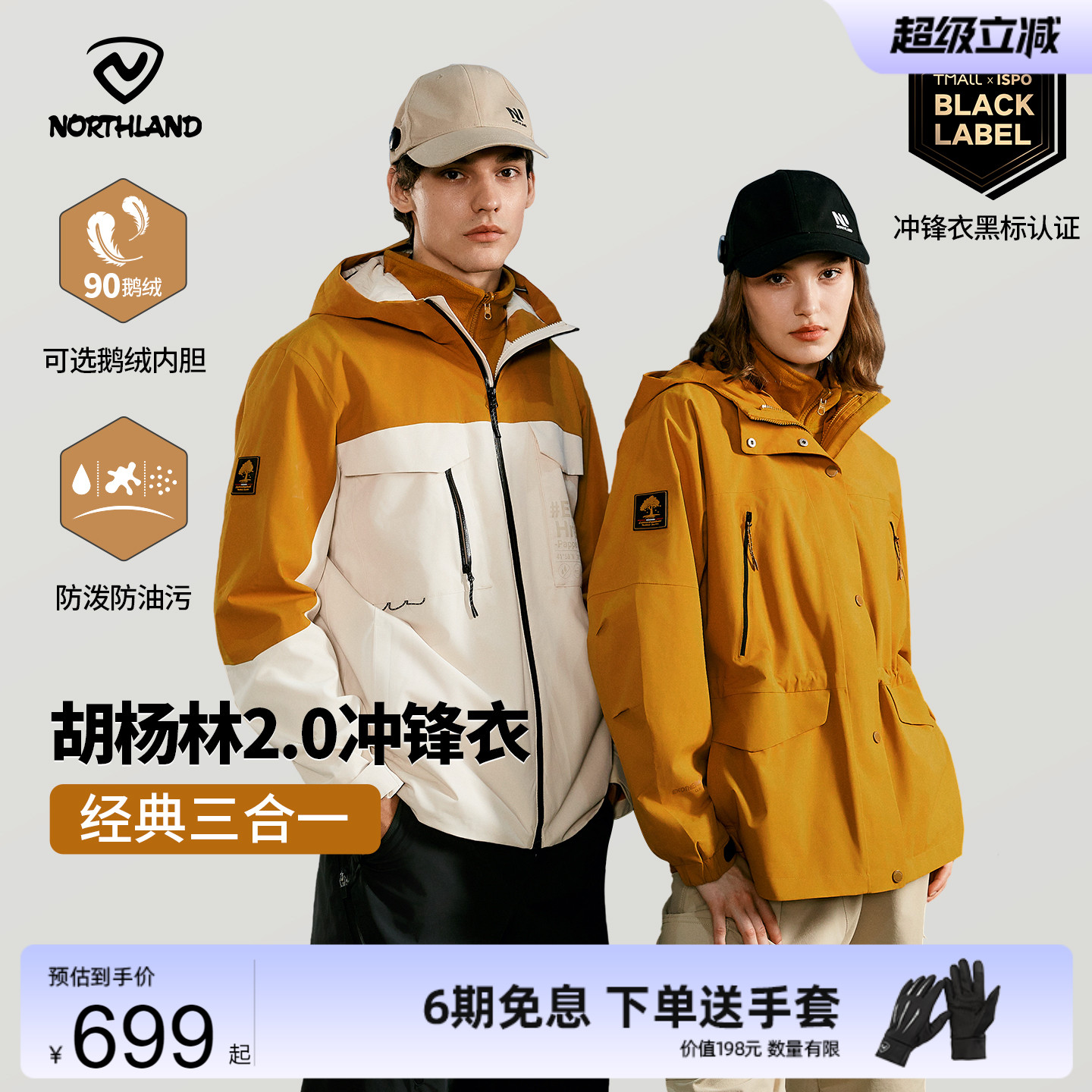 Poplar Forest 2.0 Nosilan jacket women's three-in-one goose down down jacket men's new outdoor yellow hiking and hiking suit