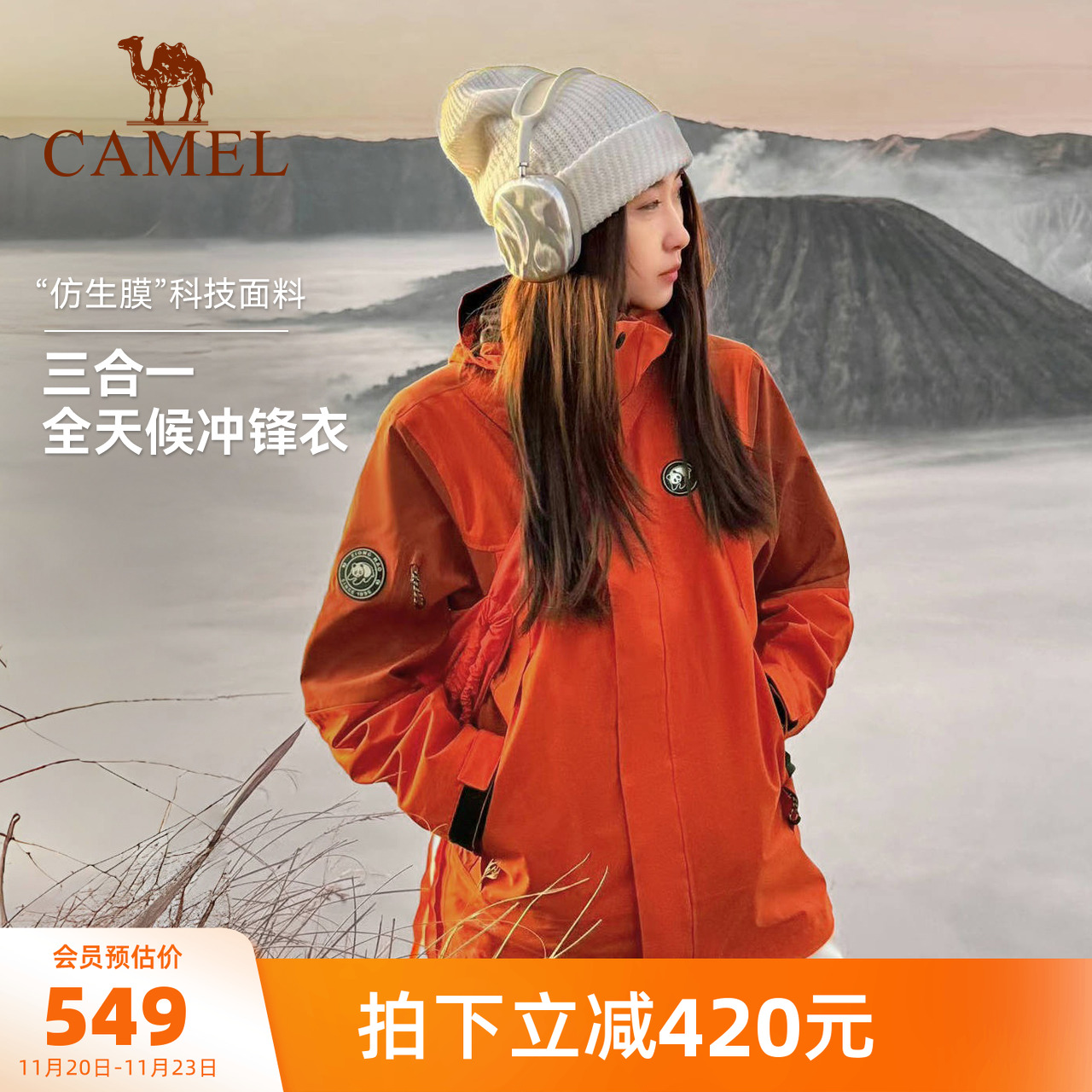 Camel Panda series outdoor orange jacket women's three-in-one new fleece mountaineering suit good-looking jacket for men