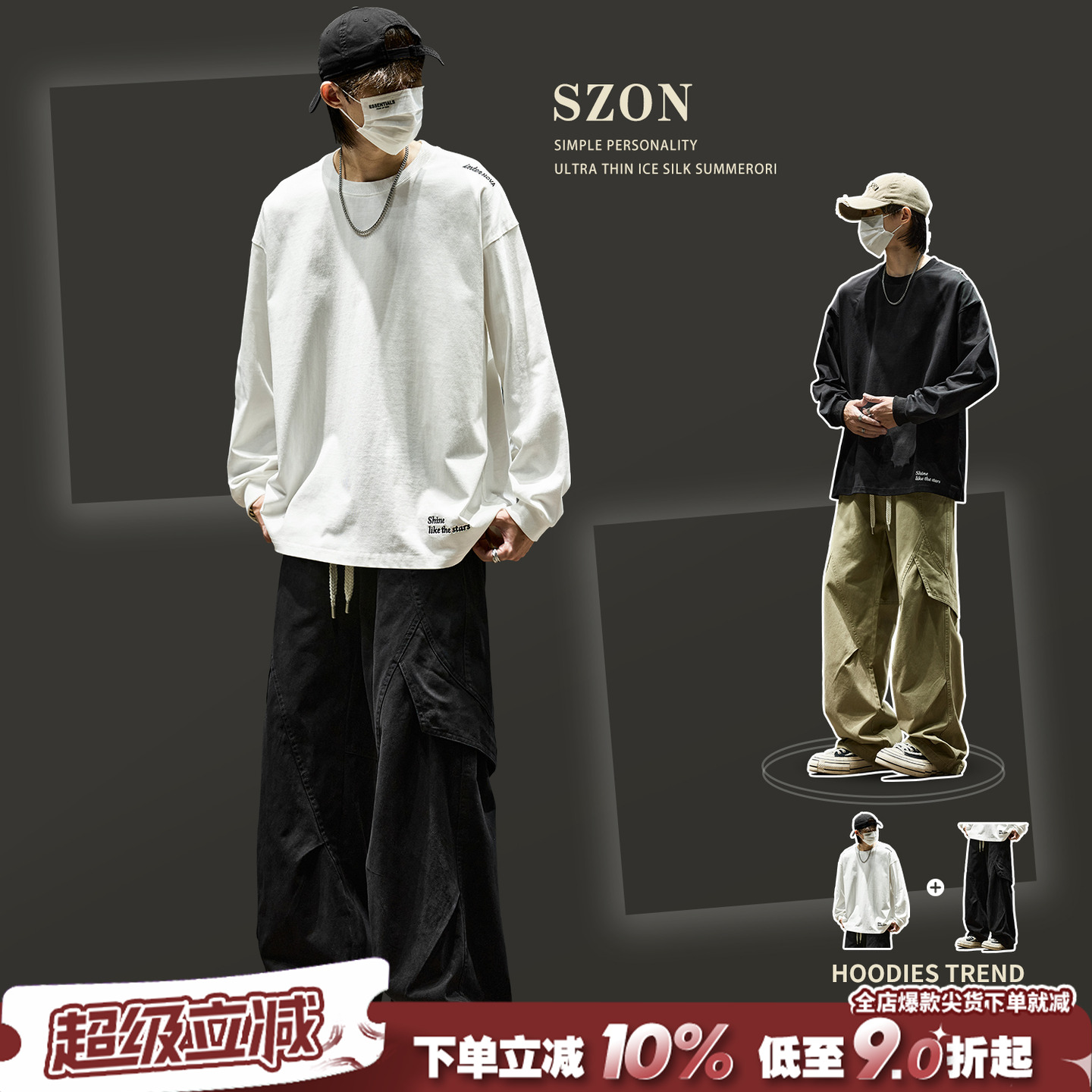 Men's suit, new cotton long-sleeved T-shirt with slacks, workwear, a complete set of autumn trendy boys' outfits