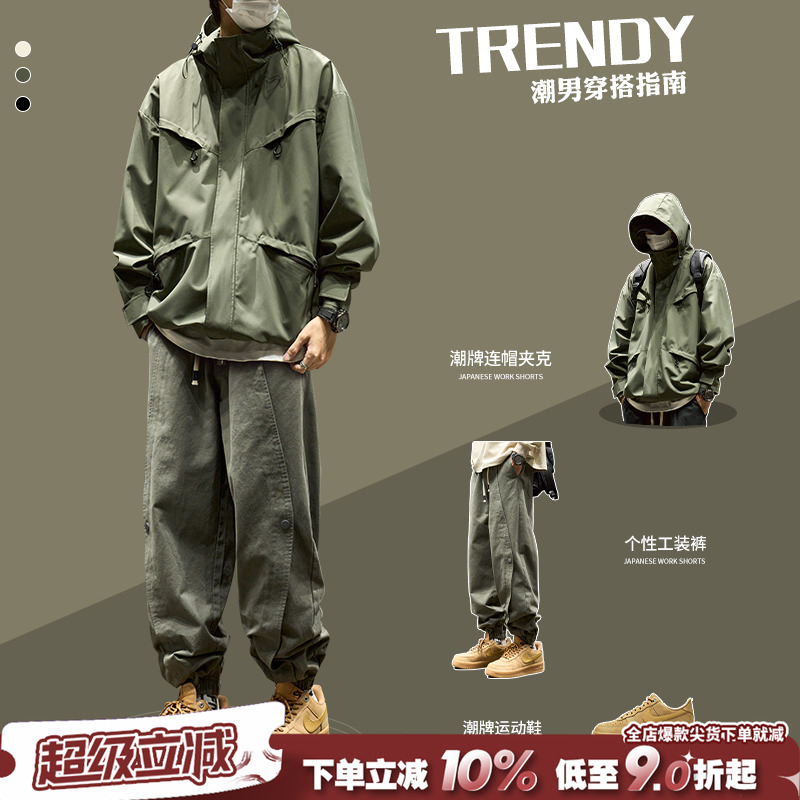 Set men's autumn and winter American casual outdoor wear set of 2025 new jacket with functional cargo pants