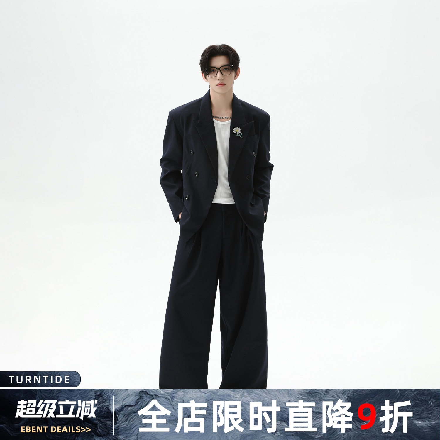 TURNTIDE Vintage Casual Suit Suit with a luxurious sunflower-embellished neckline design and loose straight-leg trousers