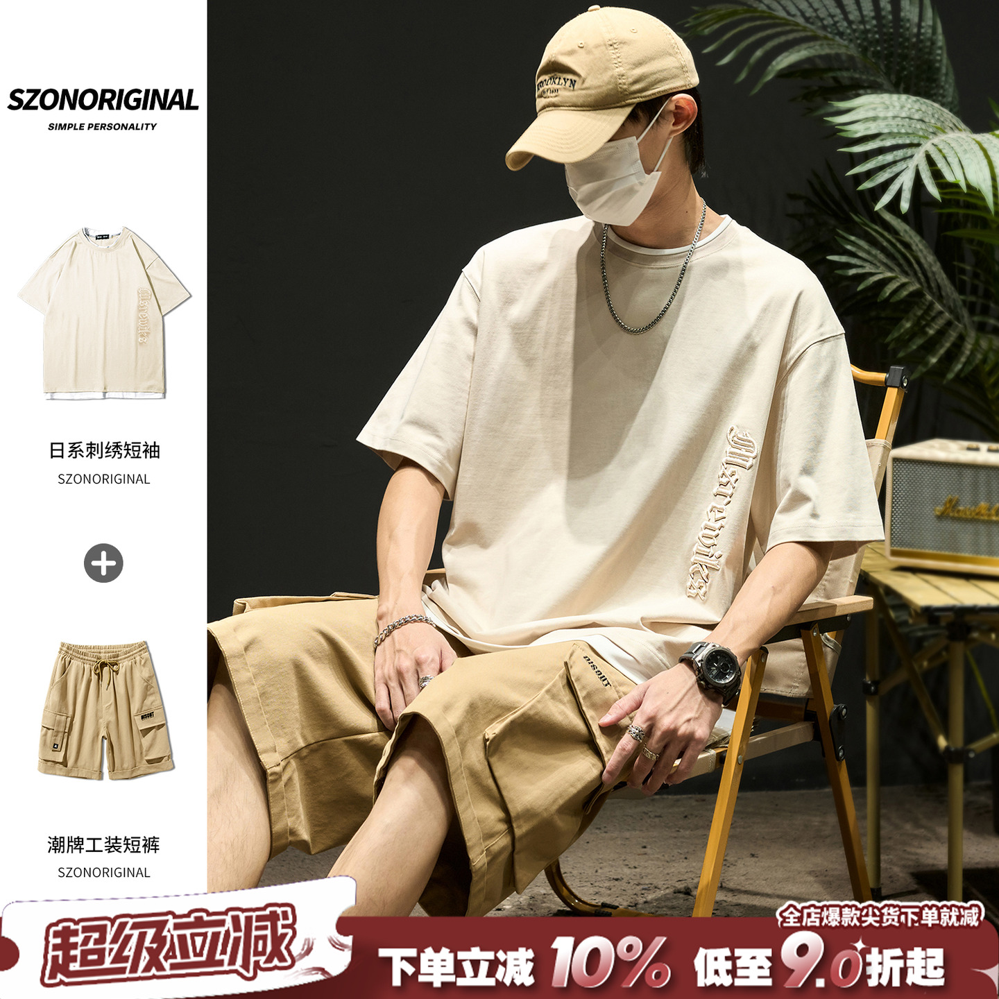 ArguE CulturE Niche V-neck padded shoulder pads short sleeve men's metal embellishment sports suit three-dimensional pleated sweatpants
