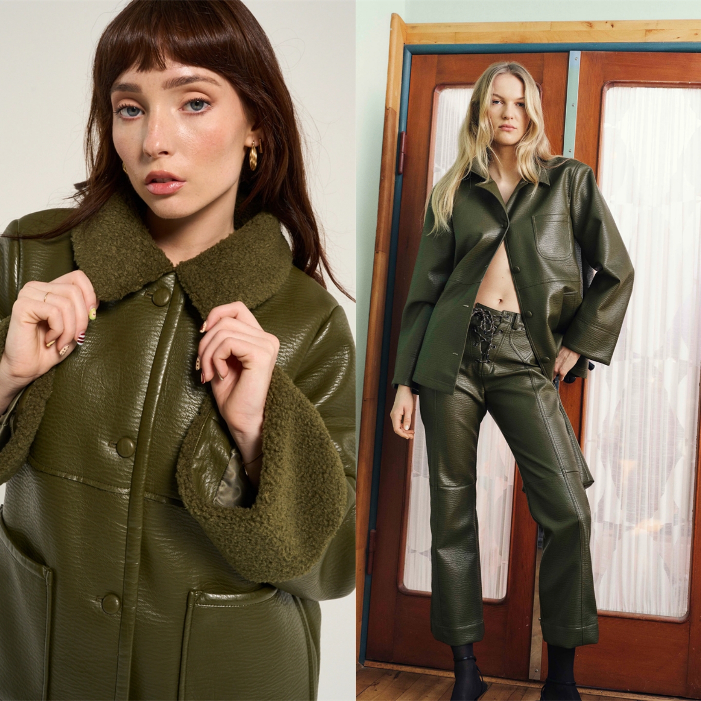 Lin Shen saw the shadow Nordic niche BUP irregular line embossed artificial leather PU protein leather jacket/leather pants