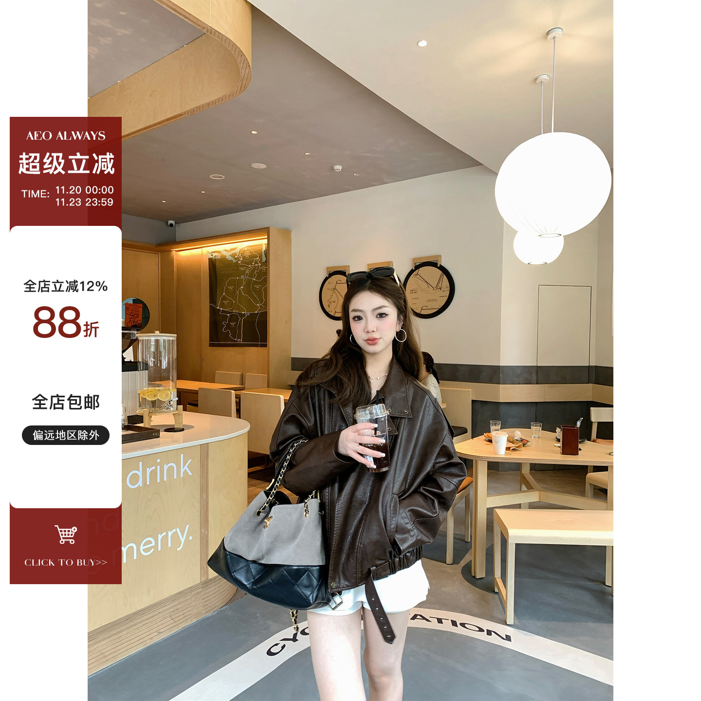 AeoAlways [Maple Leaf Frosting] Maillard Retro Leather Jacket Women's New Spring and Autumn PU Motorcycle Jacket Jacket