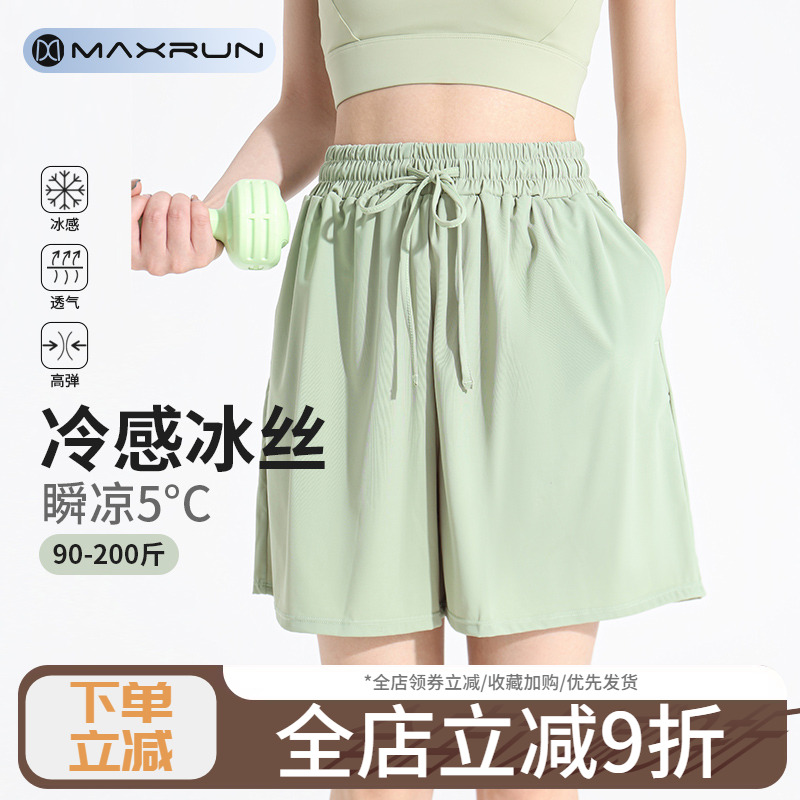 maxrun ice silk sports shorts women's loose plus size quick-drying five-point badminton pants running fitness yoga underpants