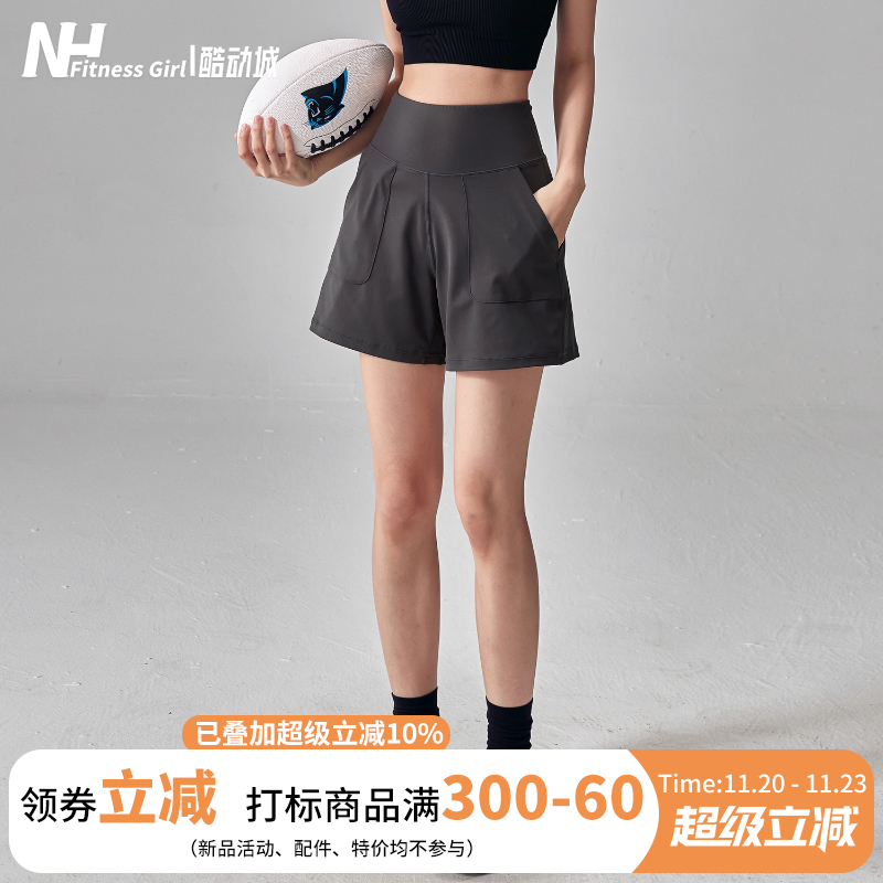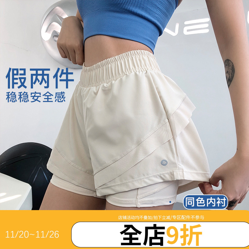 Internet celebrity sports shorts, women's loose flesh-covering high-waisted, anti-light, slimming, running gym pants, fake two pieces of yoga hot pants