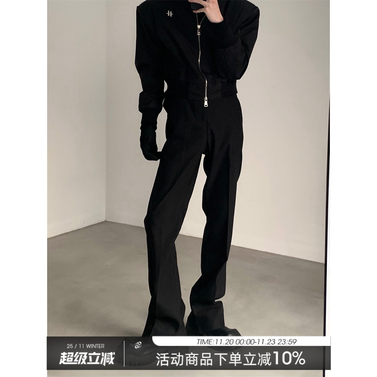 Autumn mountain style/niche high street vibe style slit micro-flared trousers, men's drape, high-end sense of accumulation floor-length pants