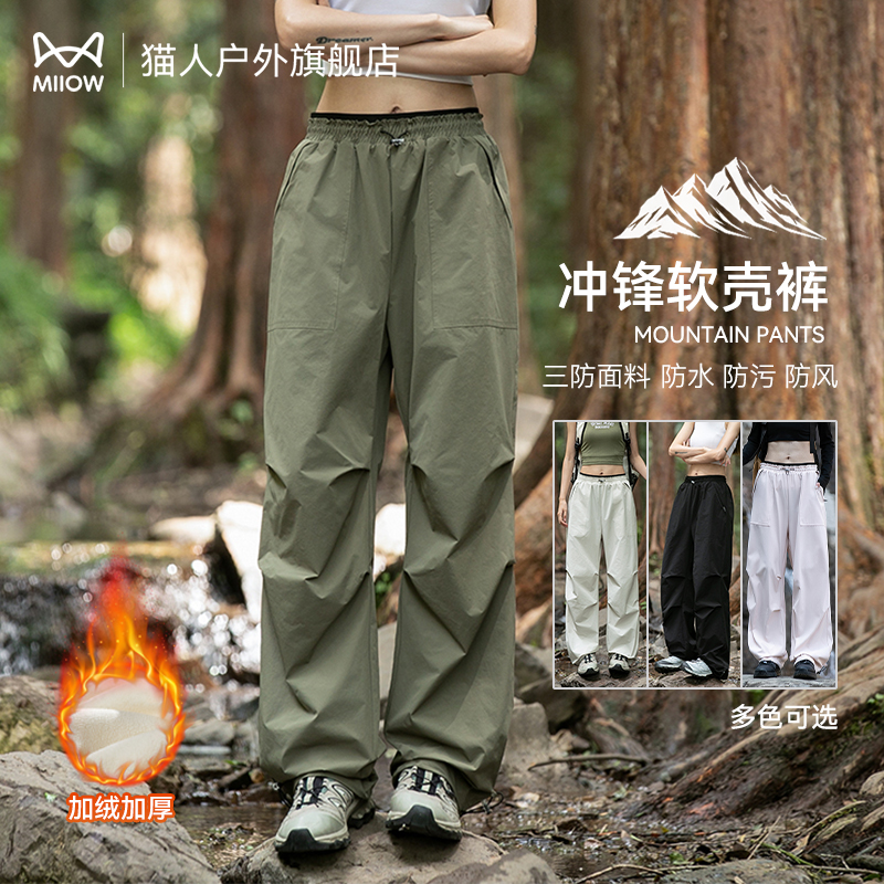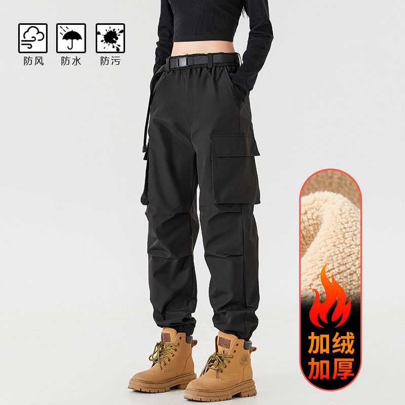 Cat man charging cargo pants, women's autumn and winter fleece, small outdoor waterproof hiking pants, casual ski pants