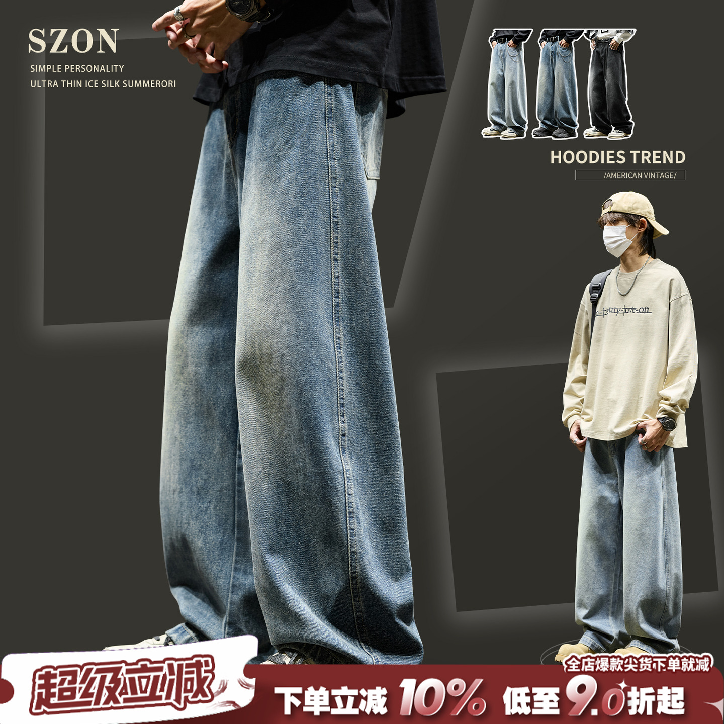 2025 new jeans men's fall and winter retro loose straight slacks American trendy brand high street scimitar pants