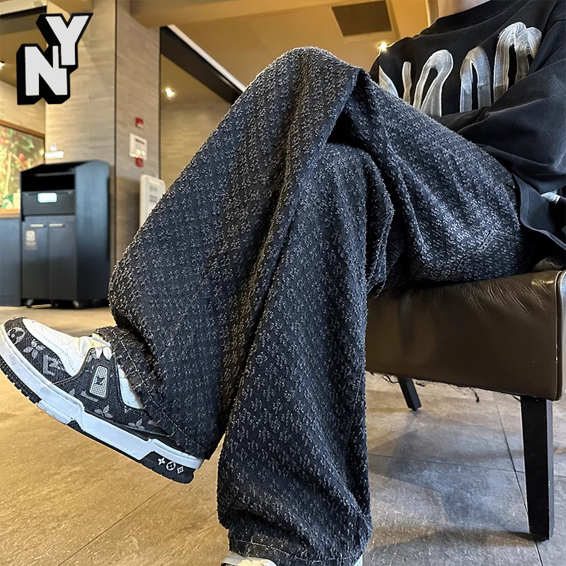 NY small fragrance jacquard jeans men's 2025 autumn American trendy brand wide-leg pants loose casual straight trousers