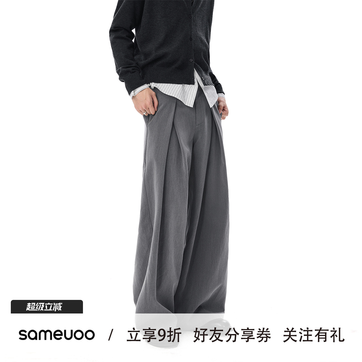 sameuoo free-range culture gray straight trousers autumn and winter anti-wrinkle easy to care for three-dimensional I-pleats neutral style