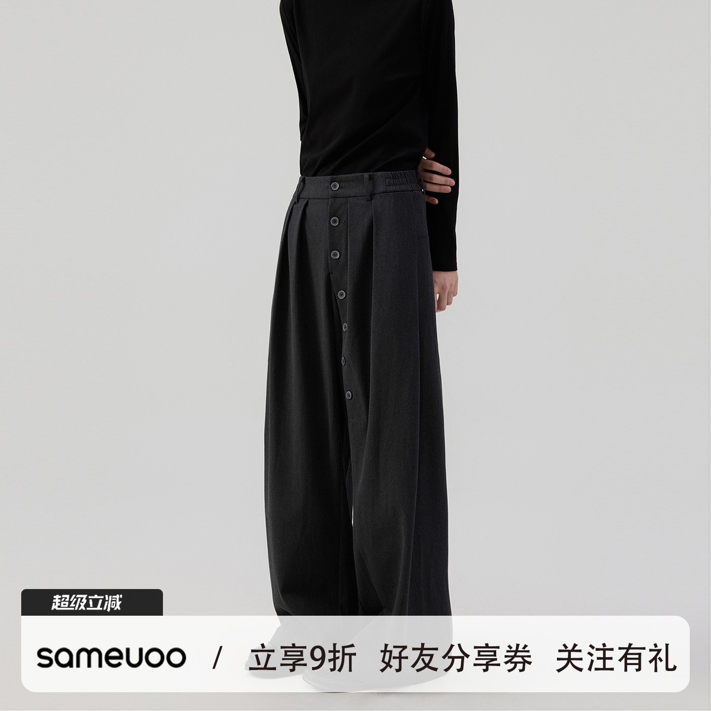 sameuoo free-range culture "hidden" breasted design gray slacks women's autumn and winter loose neutral trousers