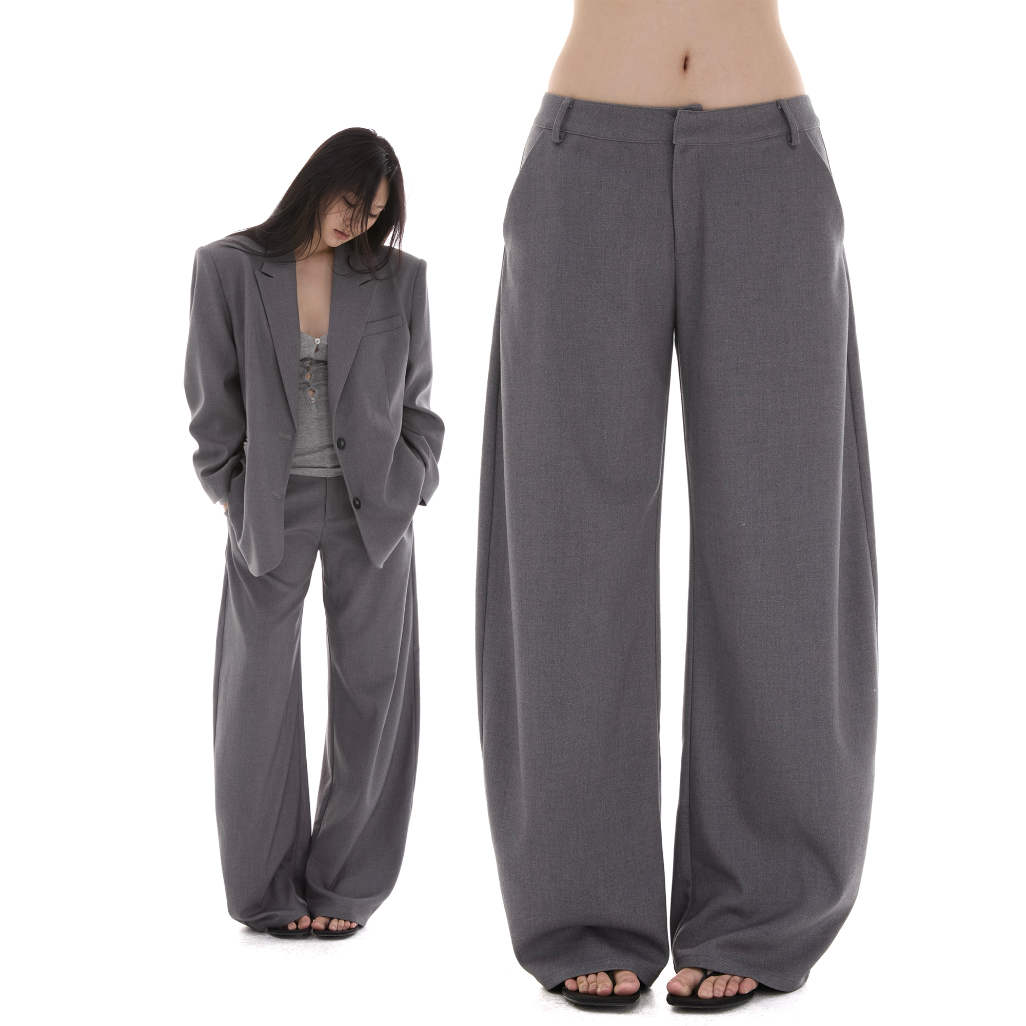 High-end gray suit pants women's autumn and winter draped wool pants 2025 new slimming straight-leg pants and loose wide-leg pants