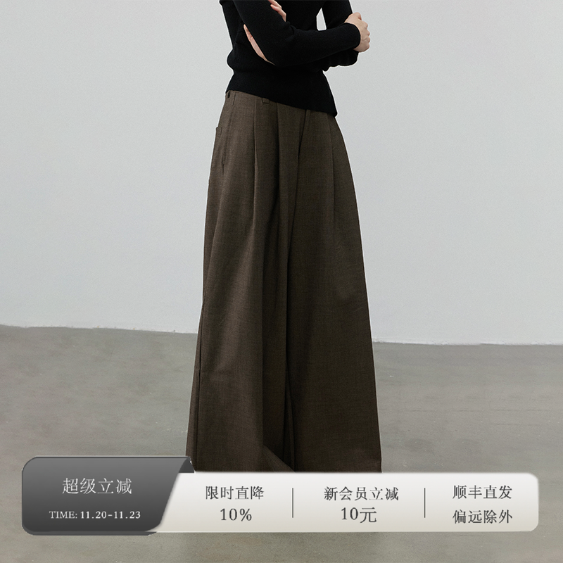 ABWEAR Coffee-colored Wide-leg Suit Pants Women's 2024 Fall/Winter New Design Straight Loose Drape Slacks