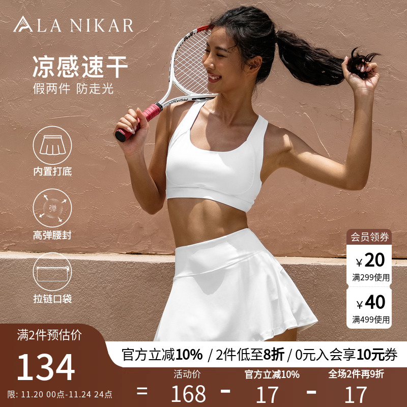 La Nikar White Tennis Skirt Women's Running Quick Dry Stretch Anti-Shine Sports Badminton Short Skirt Skirt Skirt