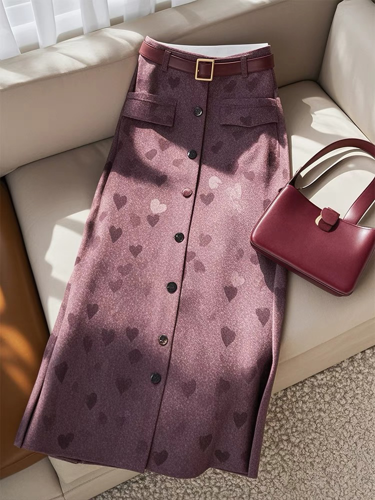 A small number of channel goods 2024 autumn A-line skirt high waist drape slimming encore red print skirt for women