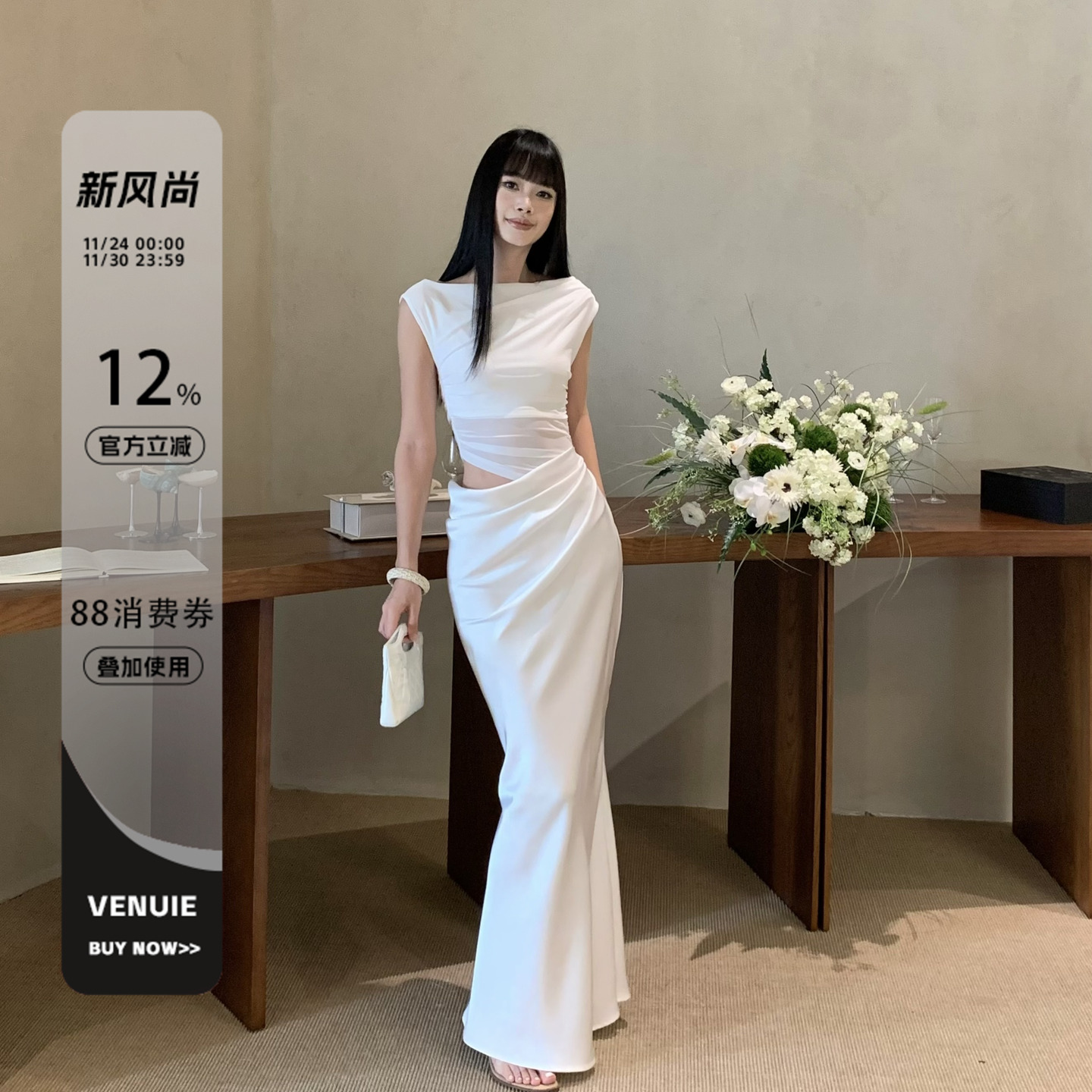 From a moment [Creator God] white halterneck camisole dress women's summer satin fishtail high-end long skirt