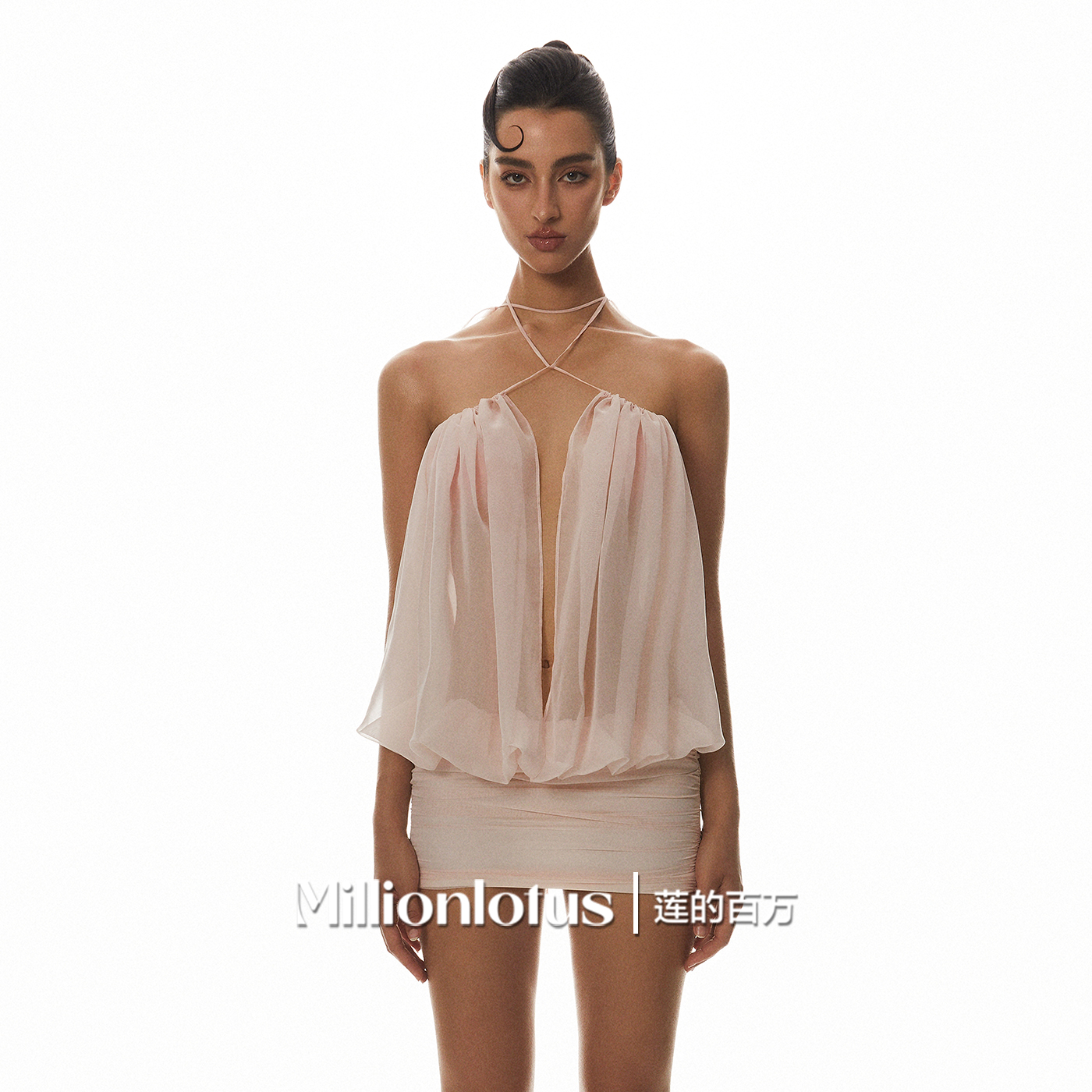 Lotus's Million Pure Desire Feminine Transparent Nude Pink Halterneck Dress (Free Nude Invisible Bandeau)